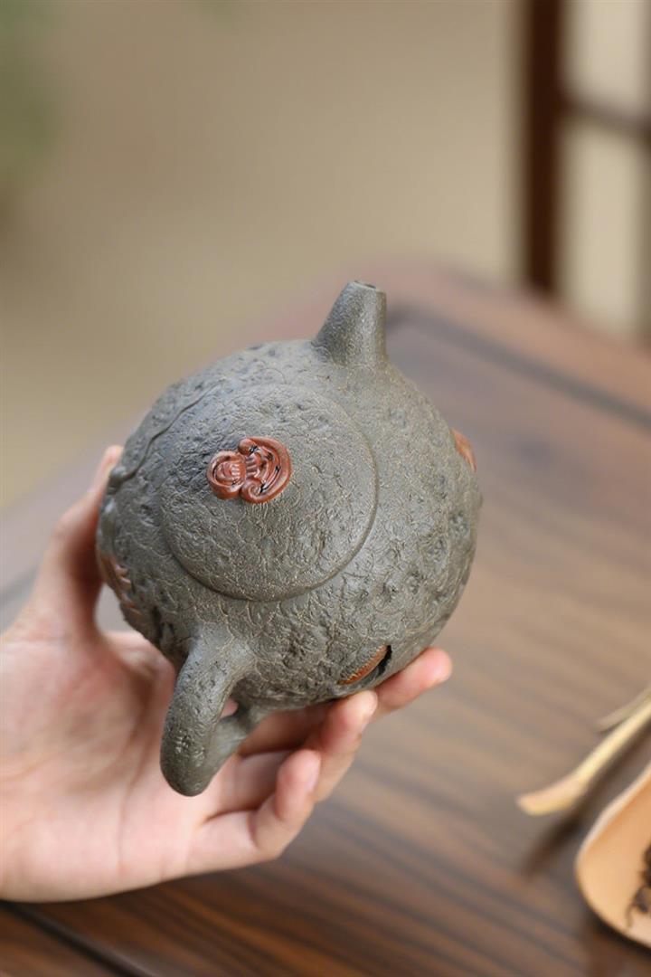200cc原礦柴燒段泥招財進寶茶壺POT7956