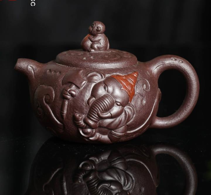 150cc原礦紫泥柴燒八方來財茶壺POT7962