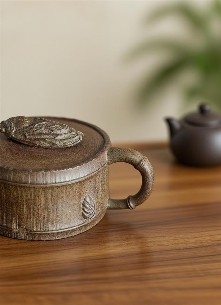150cc原礦段泥竹報平安手抓壺POT7960