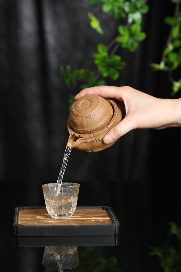 【泥料特點】砂土氣重,似淳實農民,日久使用,漸露鋒芒,養成變化,溫潤莊重。紫砂是壹種雙重氣孔結構的多孔性材質,氣孔微細,密度高。用紫砂壺沏茶,不失原味,且香不渙散,得茶之真香真味。紫砂使用越久,壺身色澤越發光亮照人,氣韻溫雅。紫砂壺長久使用器身會因撫摸擦拭,變得越發溫潤光澤。