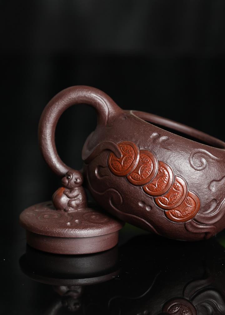 630cc原礦古銅泥滿刻百鳥朝鳳茶壺POT7969