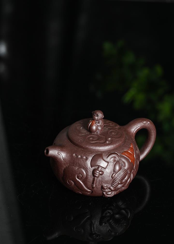 480cc原礦石黃泥滿刻萬馬奔騰茶壺POT7973