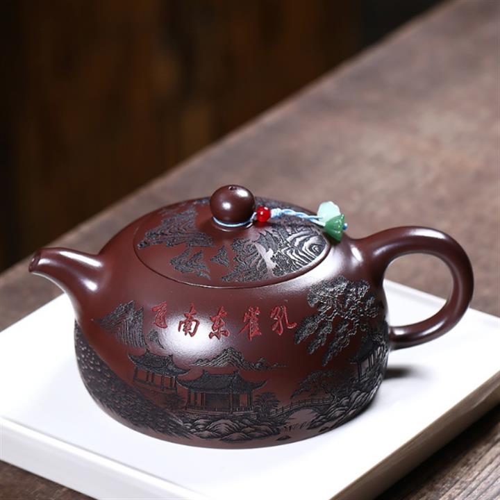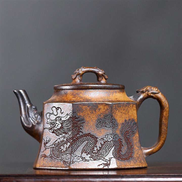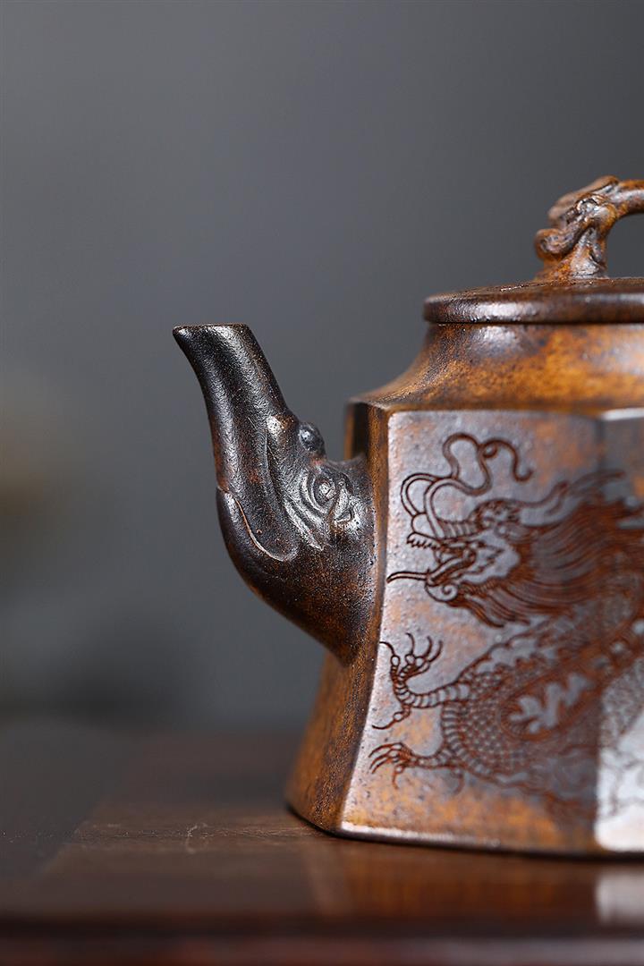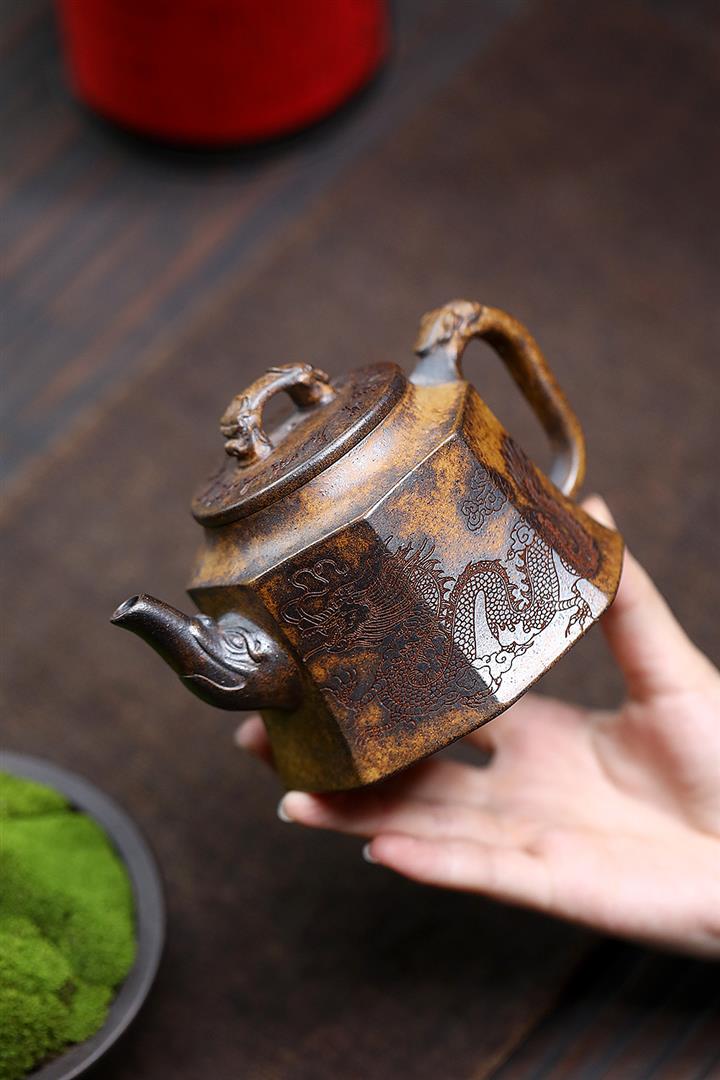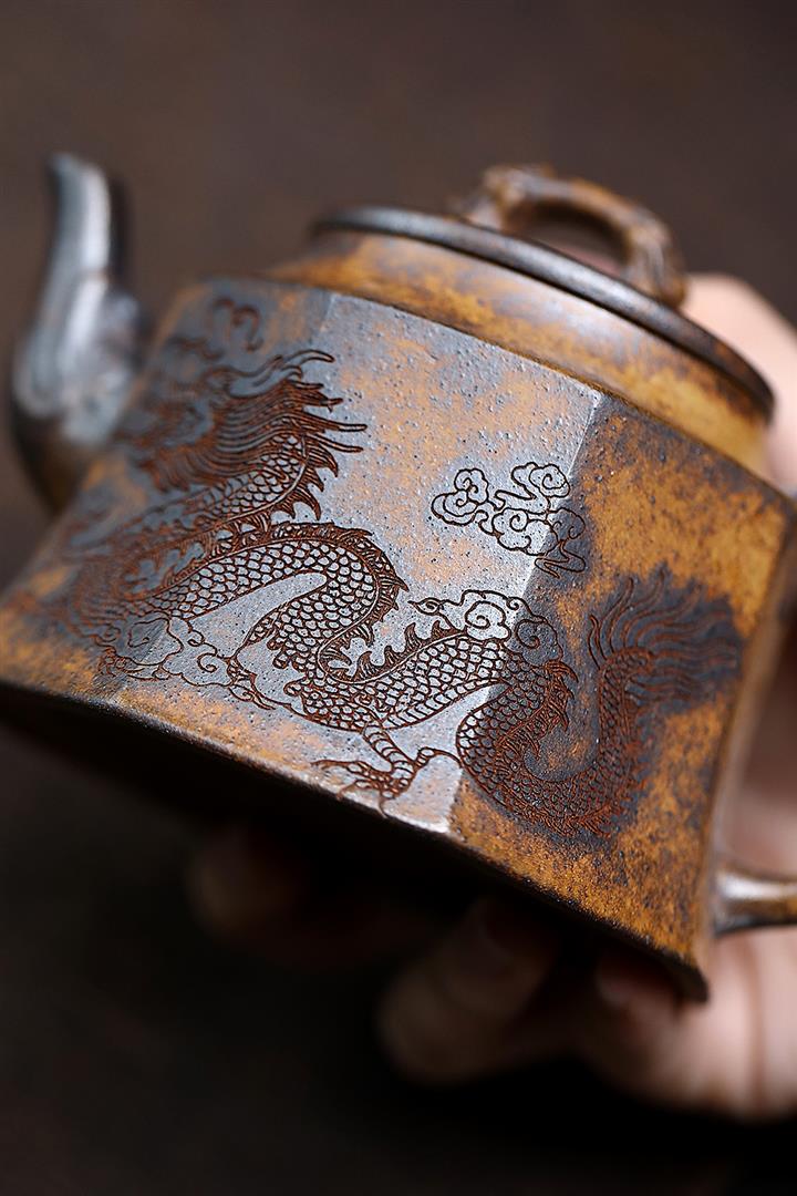 630cc原礦古銅泥滿刻百鳥朝鳳茶壺POT7969