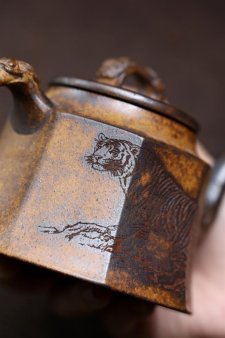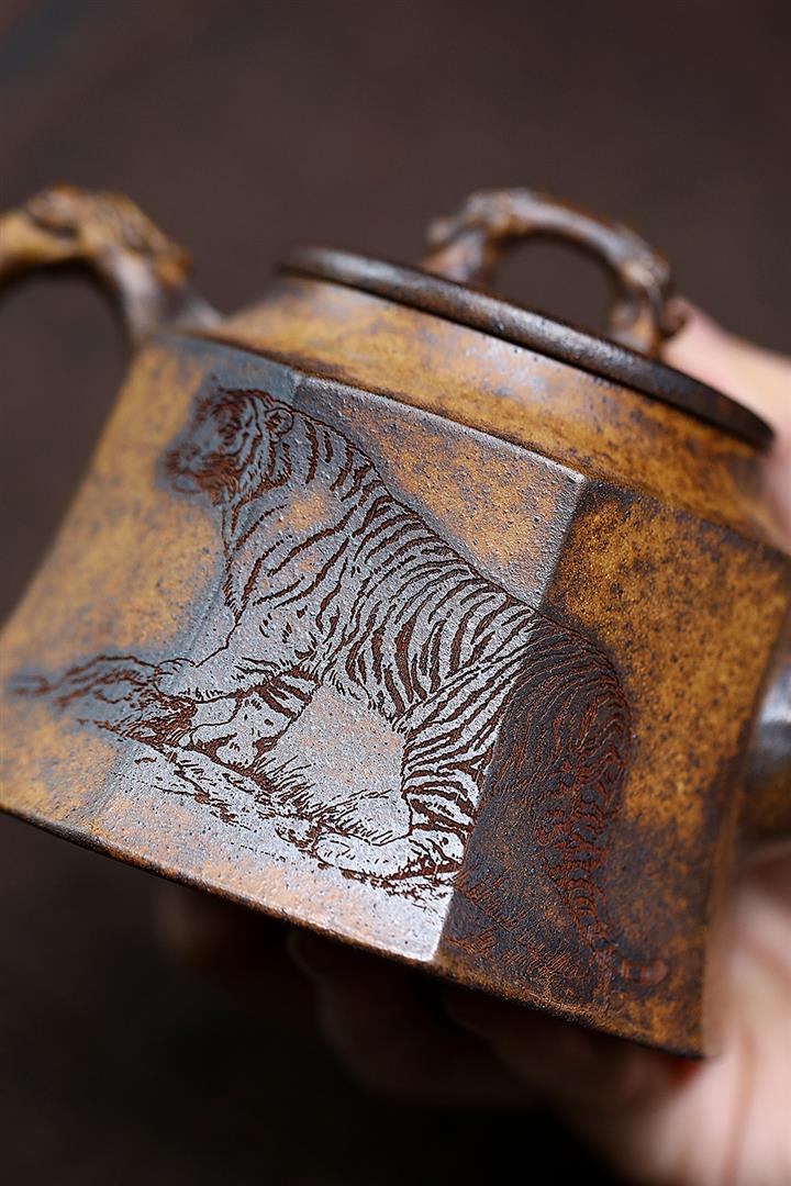 240cc原礦石黃泥猛虎出山雲爐壺POT7974