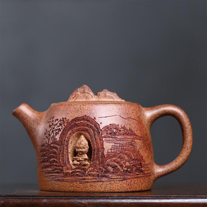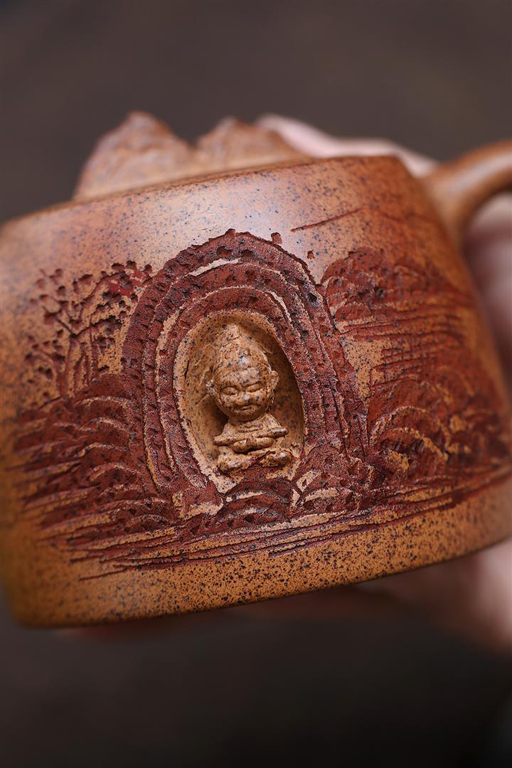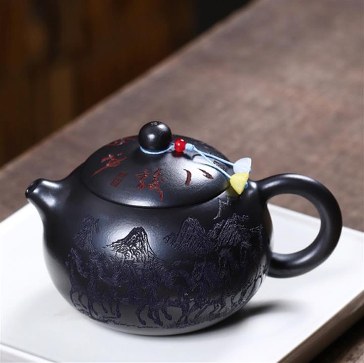 480cc原礦石黃泥滿刻萬馬奔騰茶壺POT7973