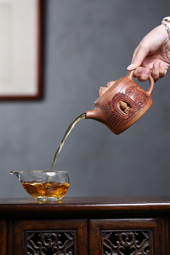 630cc原礦古銅泥滿刻百鳥朝鳳茶壺POT7969