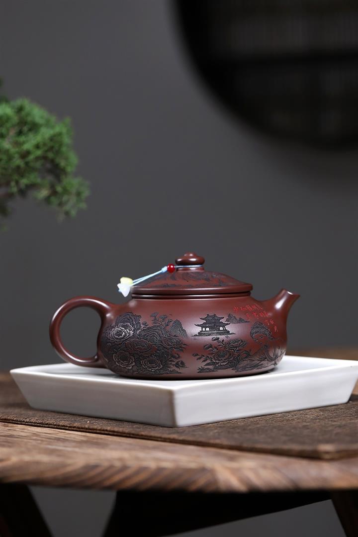 400cc原礦綠泥滿刻江山如畫壺POT7982