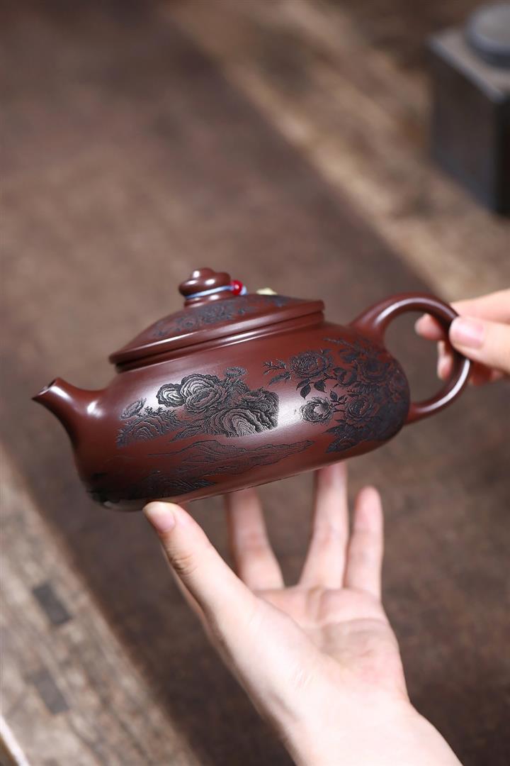 【作品介紹】此款壺形線條流暢,壺把,壺嘴,壺身壹氣呵成栩栩如生,是收藏把玩的好壺,泥料色澤古樸典雅,日久使用,漸露鋒芒,養成變化快,溫潤莊重,用其泡茶,使用的年代久,壺身就溫潤,泡出來的茶湯也就醇郁芳馨。