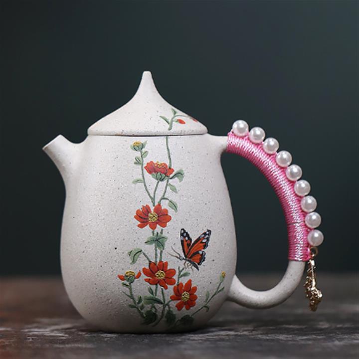 150cc原礦白玉段高龍蛋蝶戀花女士茶壺POT7988