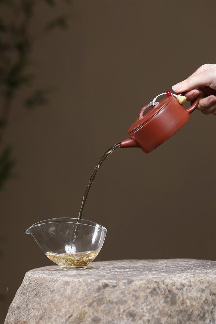 【泥料特點】砂土氣重,似淳實農民,日久使用,漸露鋒芒,養成變化,溫潤莊重。紫砂是壹種雙重氣孔結構的多孔性材質,氣孔微細,密度高。用紫砂壺沏茶,不失原味,且香不渙散,得茶之真香真味。紫砂使用越久,壺身色澤越發光亮照人,氣韻溫雅。紫砂壺長久使用器身會因撫摸擦拭,變得越發溫潤光澤。