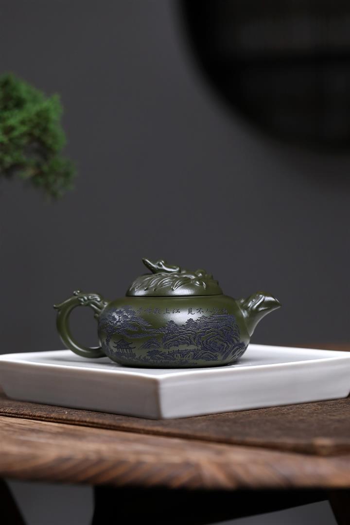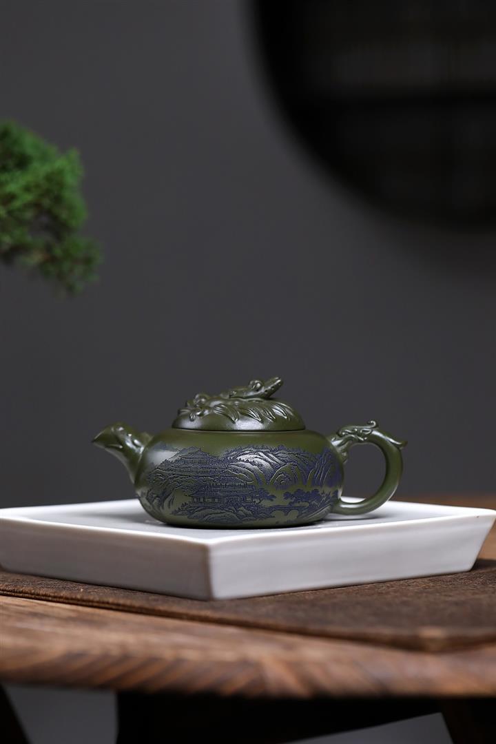 350cc原礦綠泥清風雅韻茶壺POT7993