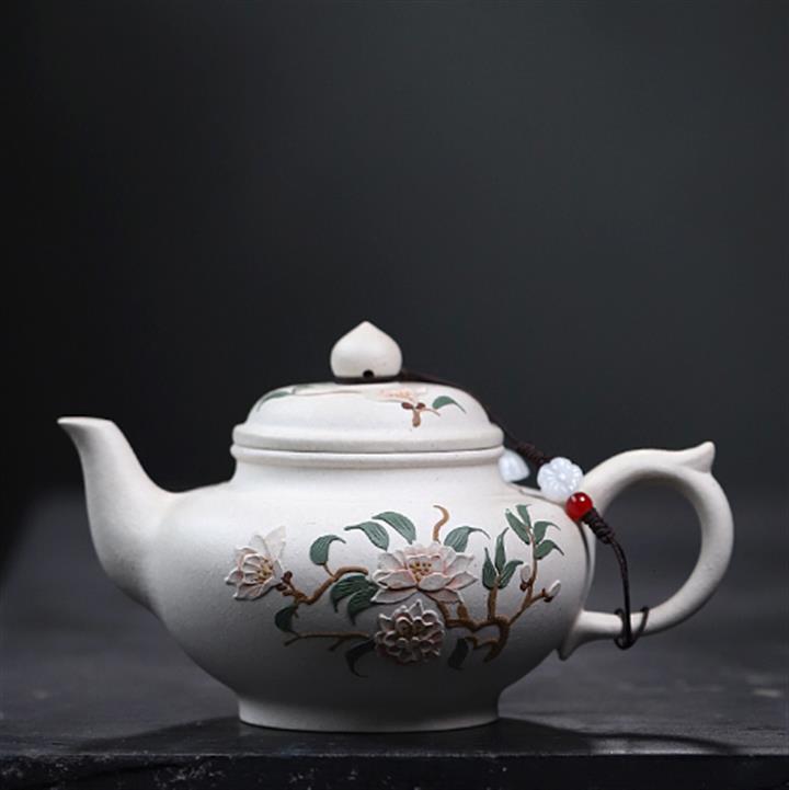 150cc原礦白玉段高龍蛋蝶戀花女士茶壺POT7988