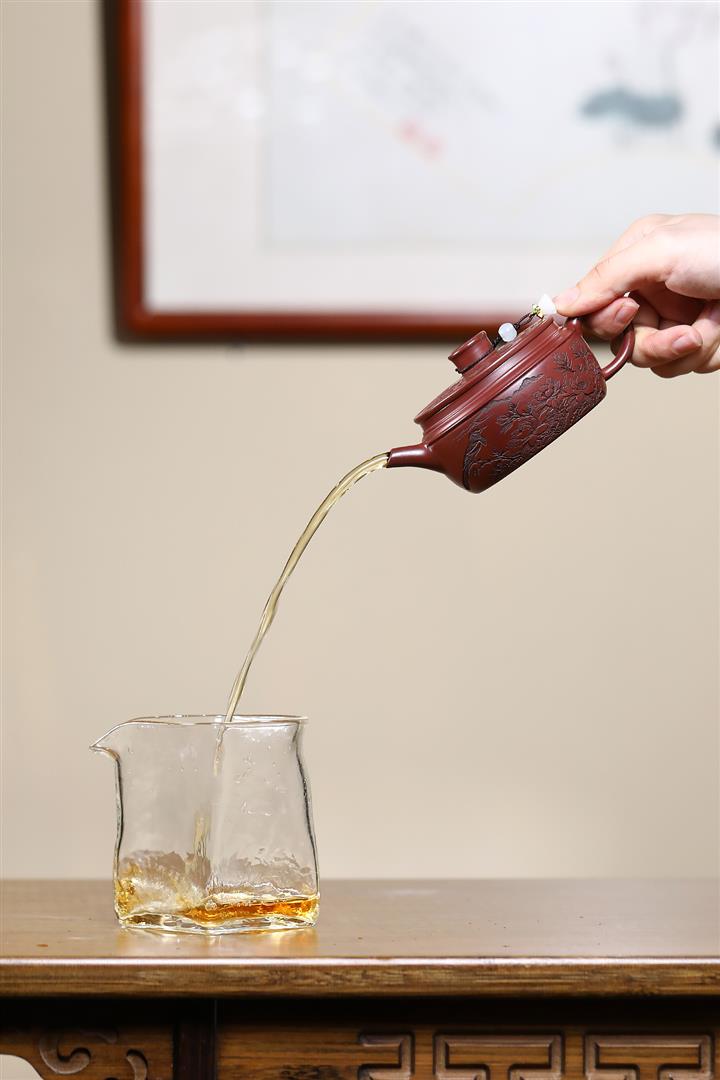 【泥料特點】砂土氣重,似淳實農民,日久使用,漸露鋒芒,養成變化,溫潤莊重。紫砂是壹種雙重氣孔結構的多孔性材質,氣孔微細,密度高。用紫砂壺沏茶,不失原味,且香不渙散,得茶之真香真味。紫砂使用越久,壺身色澤越發光亮照人,氣韻溫雅。紫砂壺長久使用器身會因撫摸擦拭,變得越發溫潤光澤。