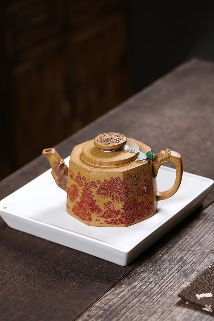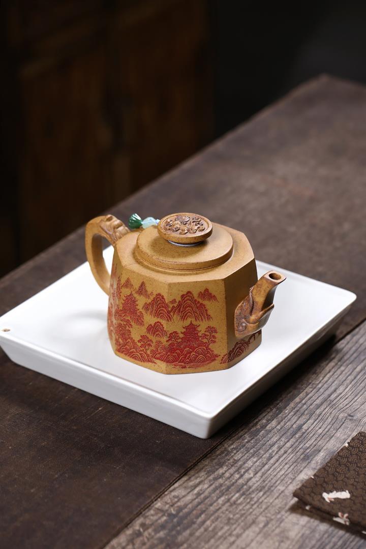 【作品介紹】此款壺形線條流暢,壺把,壺嘴,壺身壹氣呵成栩栩如生,是收藏把玩的好壺,泥料色澤古樸典雅,日久使用,漸露鋒芒,養成變化快,溫潤莊重,用其泡茶,使用的年代久,壺身就溫潤,泡出來的茶湯也就醇郁芳馨。