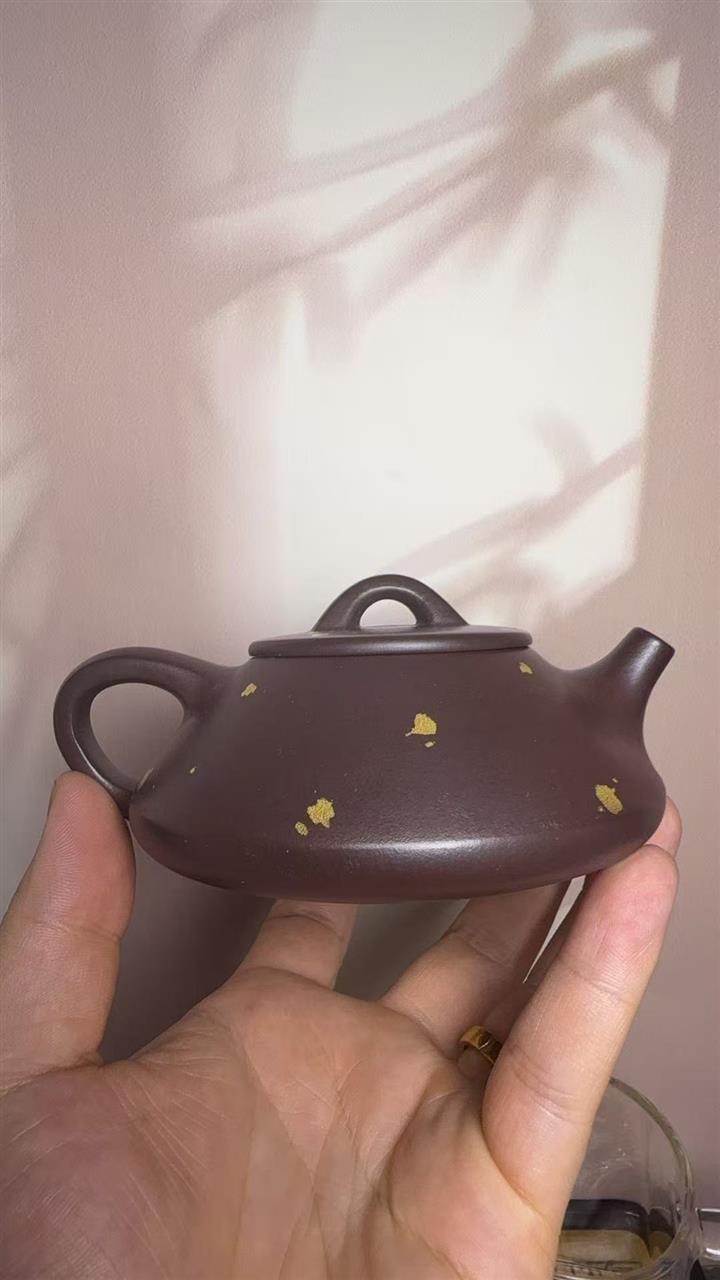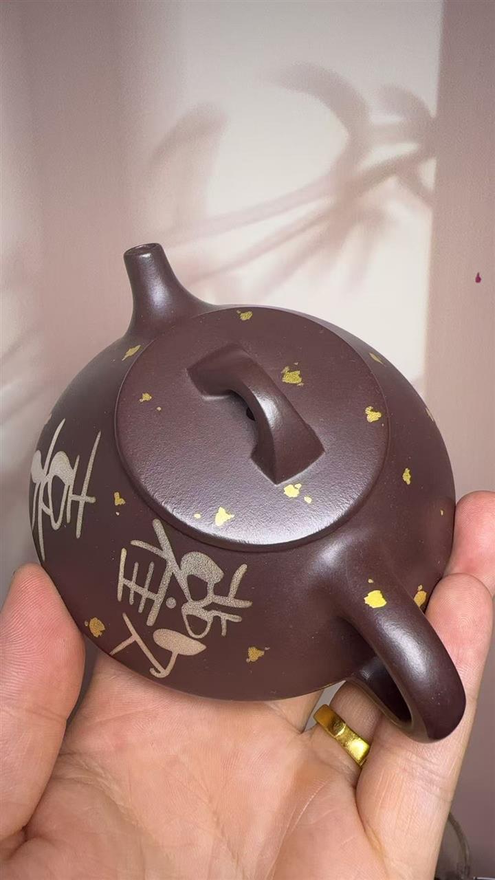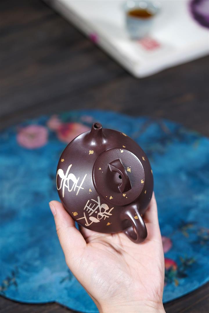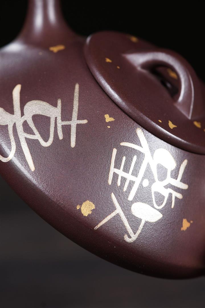 150cc原礦紫泥金銀錯灑金歡喜石瓢茶壺POT8010