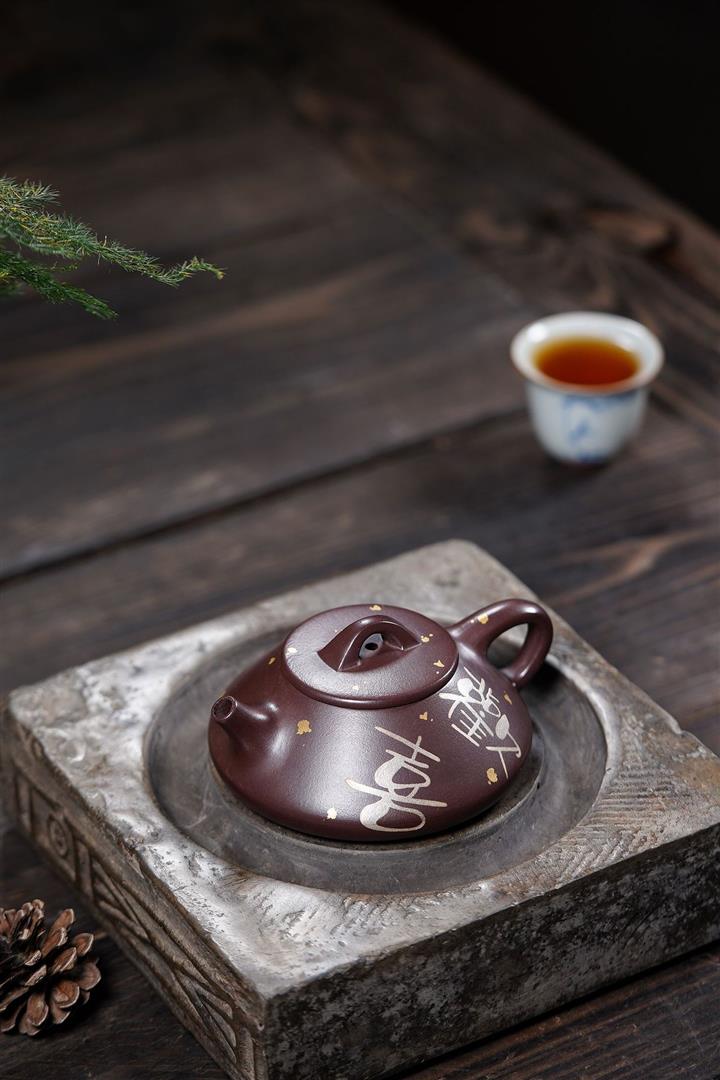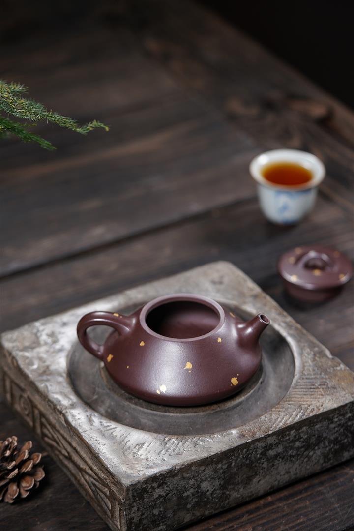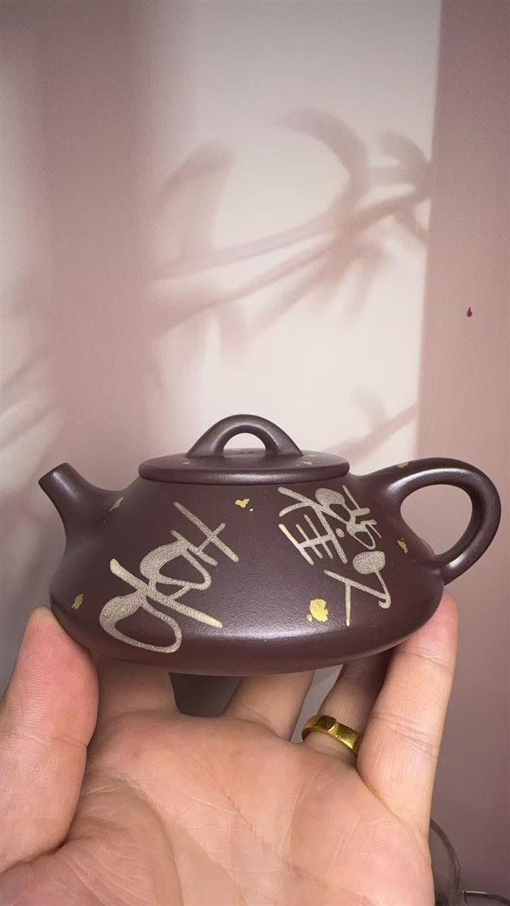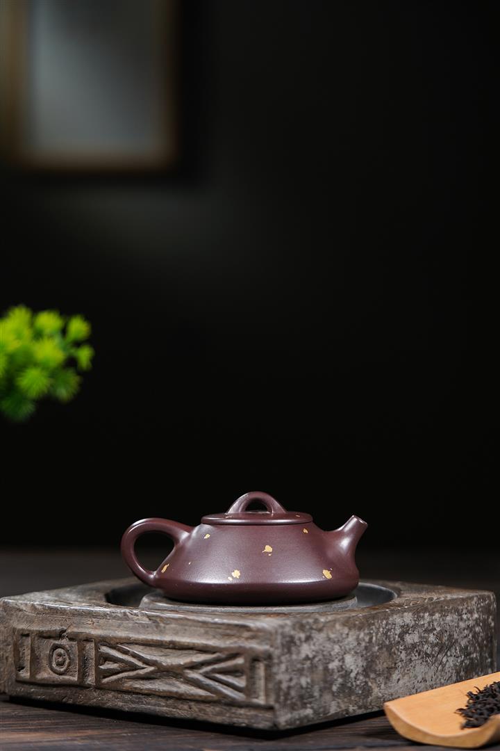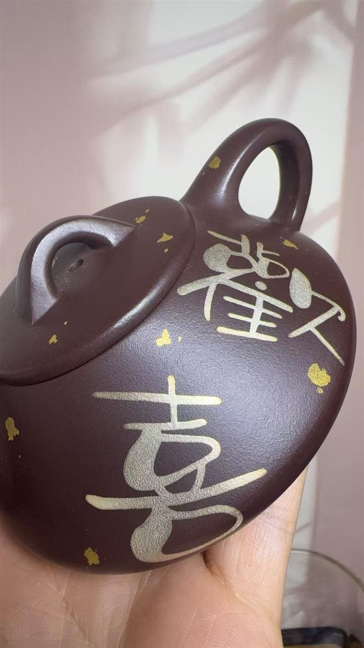 150cc原礦紫泥金銀錯灑金歡喜石瓢茶壺POT8010