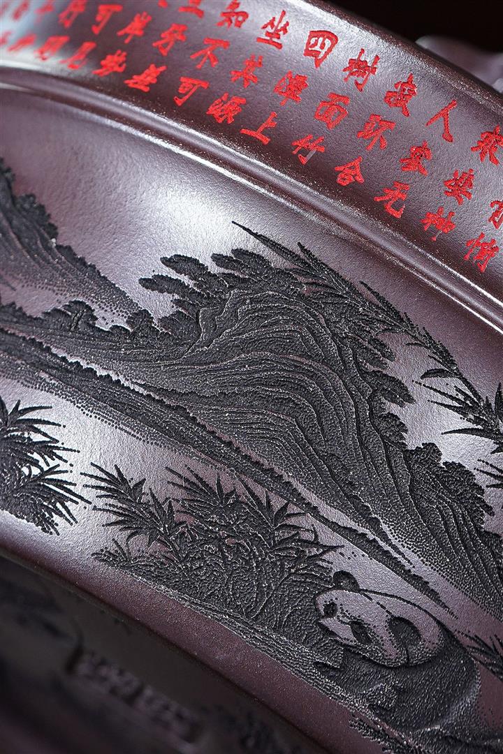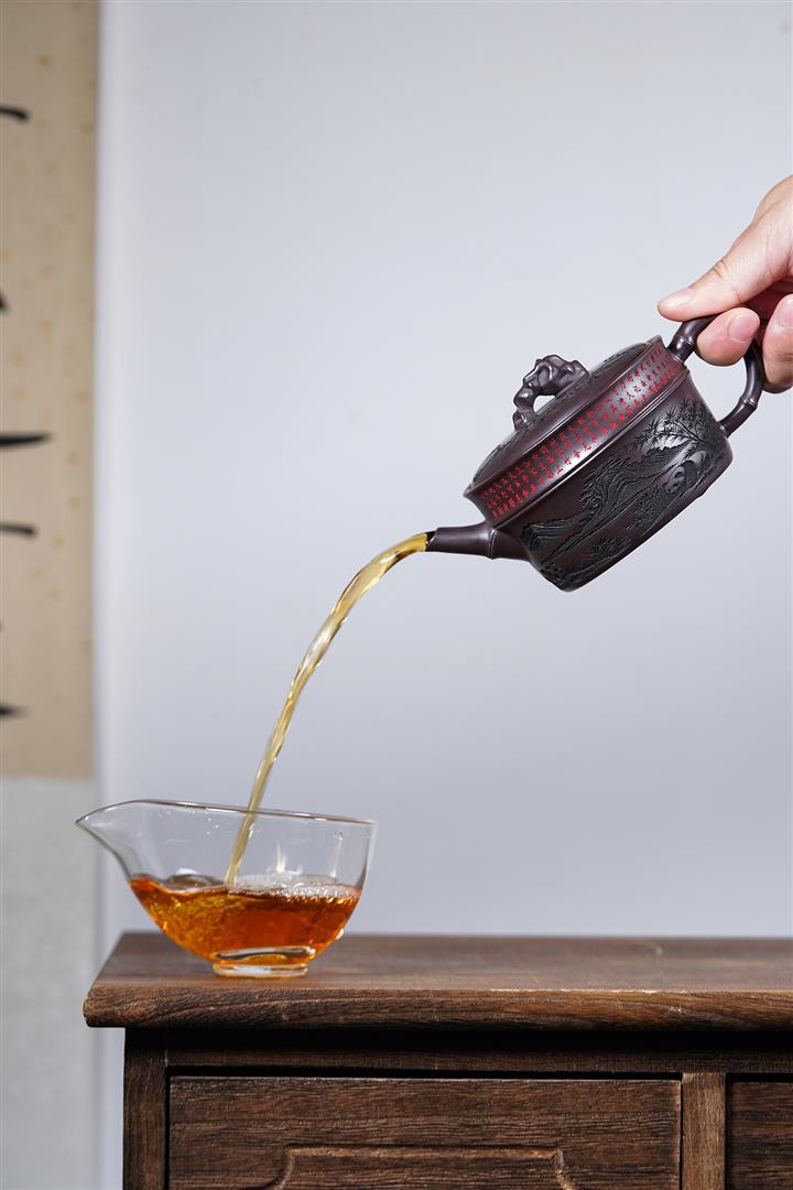 【泥料特點】砂土氣重,似淳實農民,日久使用,漸露鋒芒,養成變化,溫潤莊重。紫砂是壹種雙重氣孔結構的多孔性材質,氣孔微細,密度高。用紫砂壺沏茶,不失原味,且香不渙散,得茶之真香真味。紫砂使用越久,壺身色澤越發光亮照人,氣韻溫雅。紫砂壺長久使用器身會因撫摸擦拭,變得越發溫潤光澤。