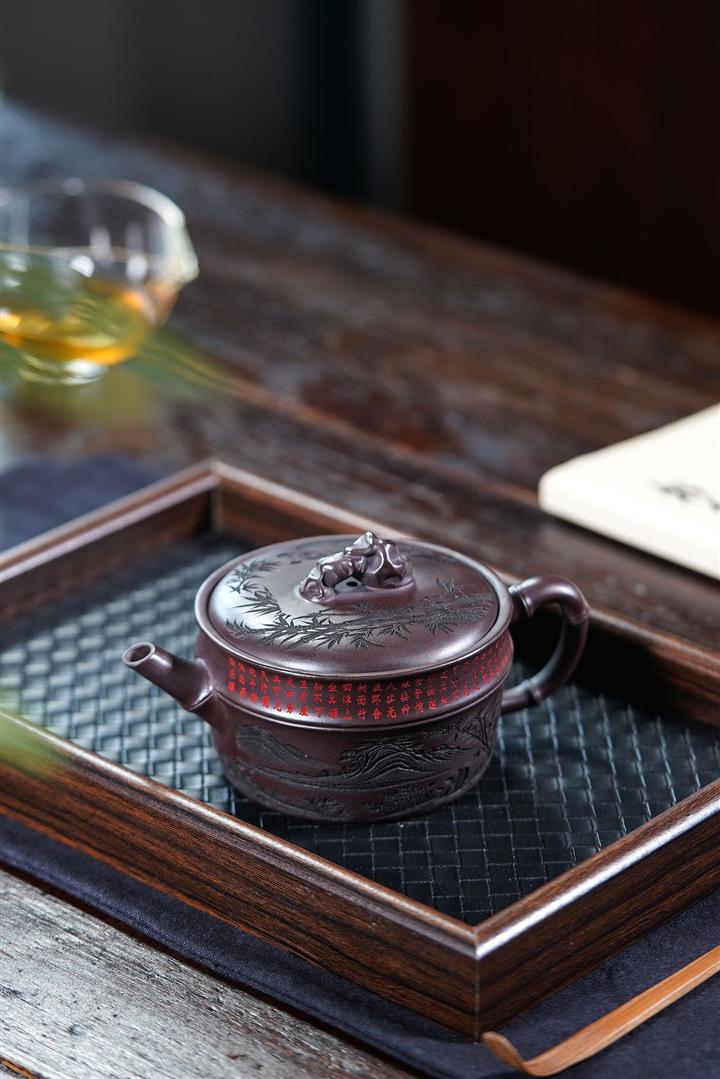 【作品介紹】此款壺形線條流暢,壺把,壺嘴,壺身壹氣呵成栩栩如生,是收藏把玩的好壺,泥料色澤古樸典雅,日久使用,漸露鋒芒,養成變化快,溫潤莊重,用其泡茶,使用的年代久,壺身就溫潤,泡出來的茶湯也就醇郁芳馨。