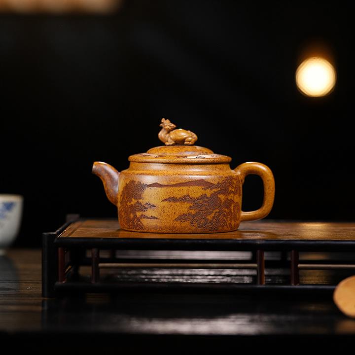 300cc原礦石黃泥山河駿馬竹段茶壺POT8028