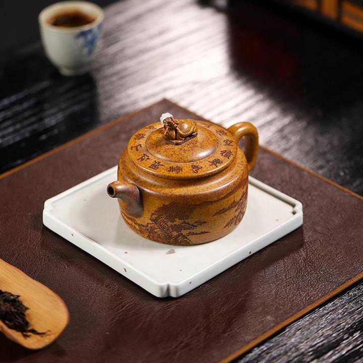 150cc原礦石黃泥幽蘭扁柿茶壺POT8031