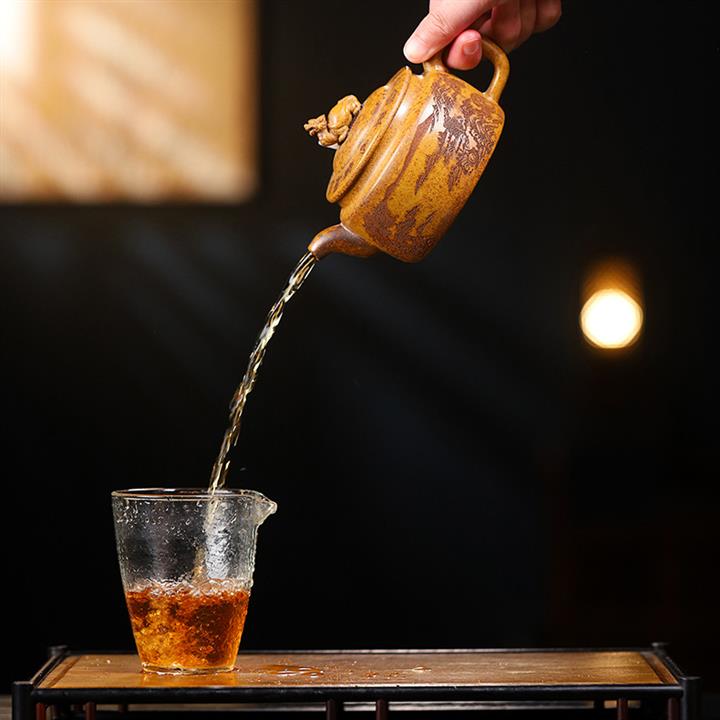 【泥料特點】砂土氣重,似淳實農民,日久使用,漸露鋒芒,養成變化,溫潤莊重。紫砂是壹種雙重氣孔結構的多孔性材質,氣孔微細,密度高。用紫砂壺沏茶,不失原味,且香不渙散,得茶之真香真味。紫砂使用越久,壺身色澤越發光亮照人,氣韻溫雅。紫砂壺長久使用器身會因撫摸擦拭,變得越發溫潤光澤。