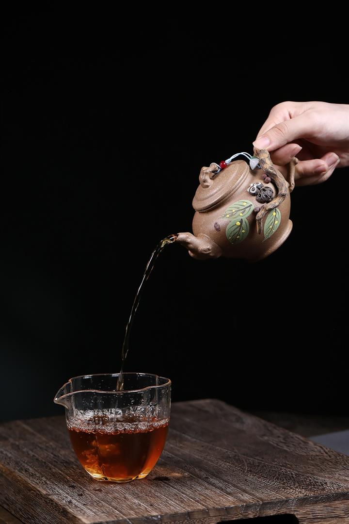 【泥料特點】砂土氣重,似淳實農民,日久使用,漸露鋒芒,養成變化,溫潤莊重。紫砂是壹種雙重氣孔結構的多孔性材質,氣孔微細,密度高。用紫砂壺沏茶,不失原味,且香不渙散,得茶之真香真味。紫砂使用越久,壺身色澤越發光亮照人,氣韻溫雅。紫砂壺長久使用器身會因撫摸擦拭,變得越發溫潤光澤。