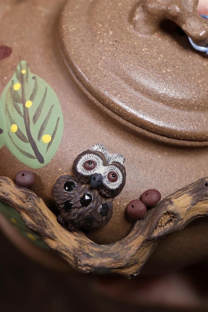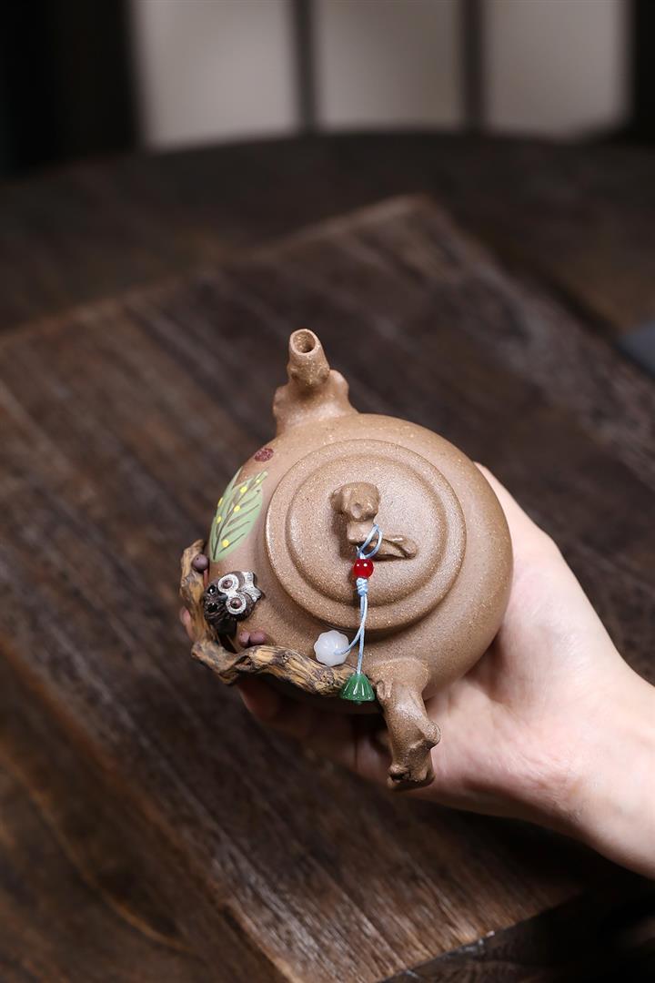 180cc原礦大紅袍雙色花鳥漢鐸茶壺POT8033
