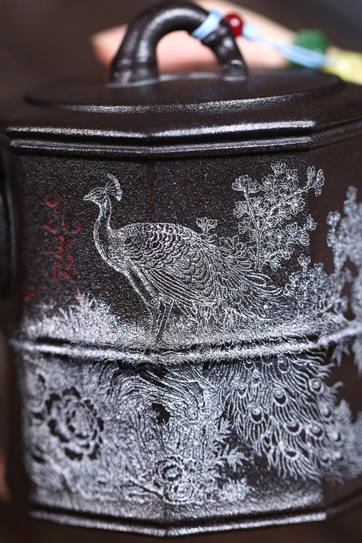 180cc原礦大紅袍雙色花鳥漢鐸茶壺POT8033