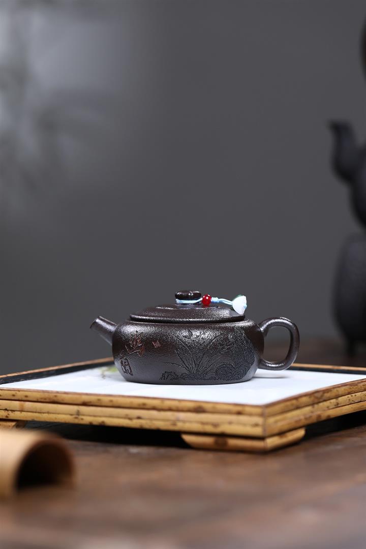 180cc原礦大紅袍雙色花鳥漢鐸茶壺POT8033