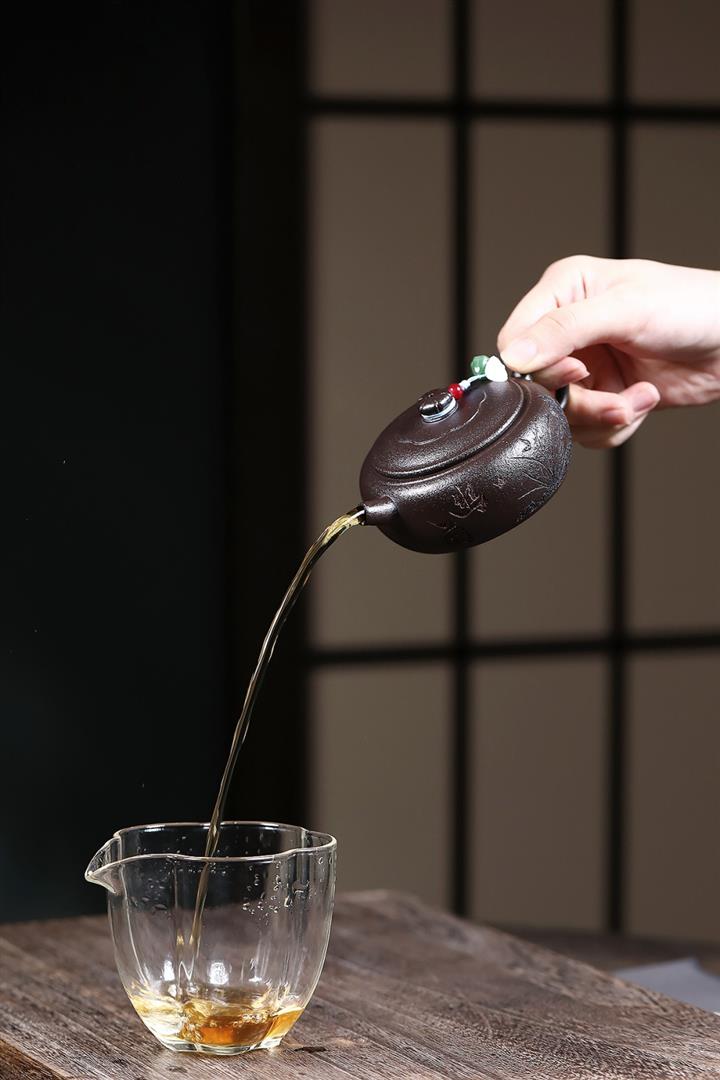 【泥料特點】砂土氣重,似淳實農民,日久使用,漸露鋒芒,養成變化,溫潤莊重。紫砂是壹種雙重氣孔結構的多孔性材質,氣孔微細,密度高。用紫砂壺沏茶,不失原味,且香不渙散,得茶之真香真味。紫砂使用越久,壺身色澤越發光亮照人,氣韻溫雅。紫砂壺長久使用器身會因撫摸擦拭,變得越發溫潤光澤。