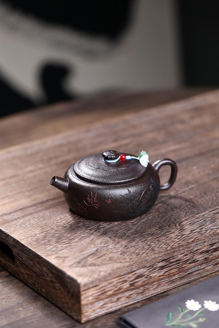 200cc原礦紫泥泥繪多子多福茶壺POT8032