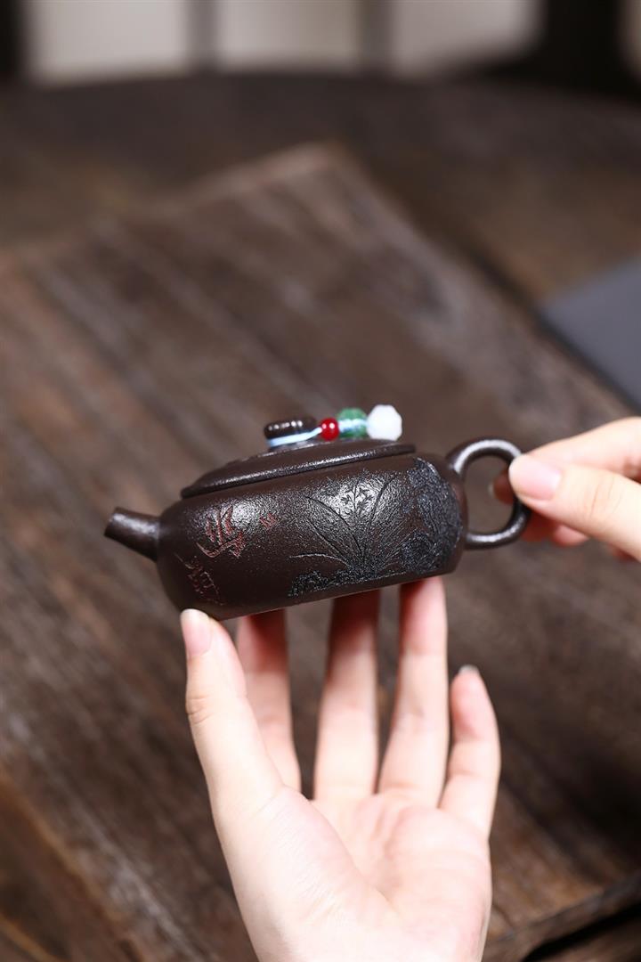 【作品介紹】此款壺形線條流暢,壺把,壺嘴,壺身壹氣呵成栩栩如生,是收藏把玩的好壺,泥料色澤古樸典雅,日久使用,漸露鋒芒,養成變化快,溫潤莊重,用其泡茶,使用的年代久,壺身就溫潤,泡出來的茶湯也就醇郁芳馨。