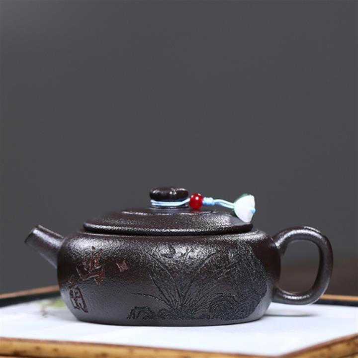 150cc原礦石黃泥幽蘭扁柿茶壺POT8031
