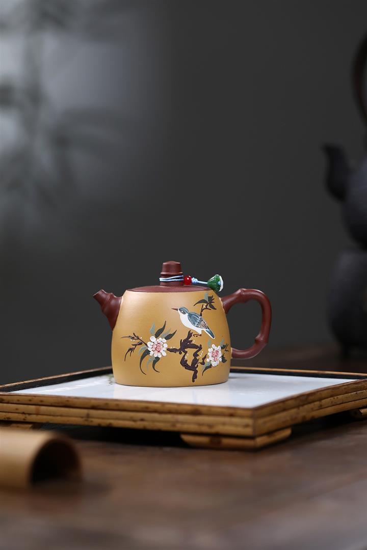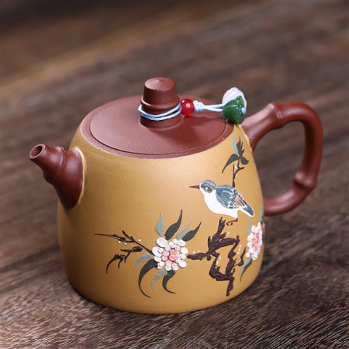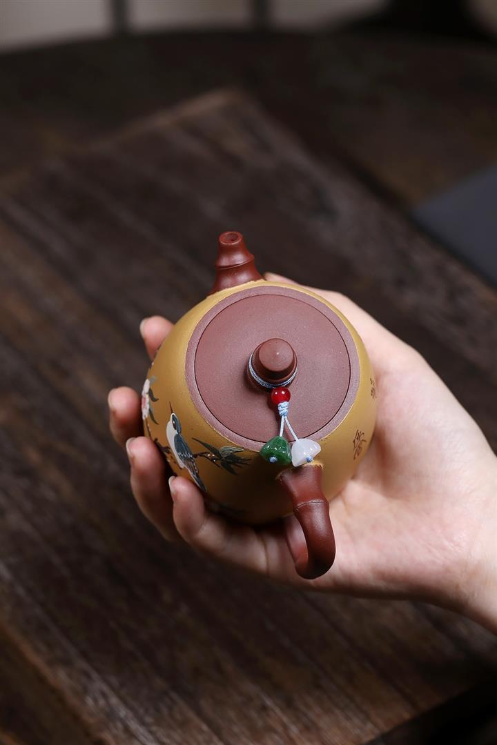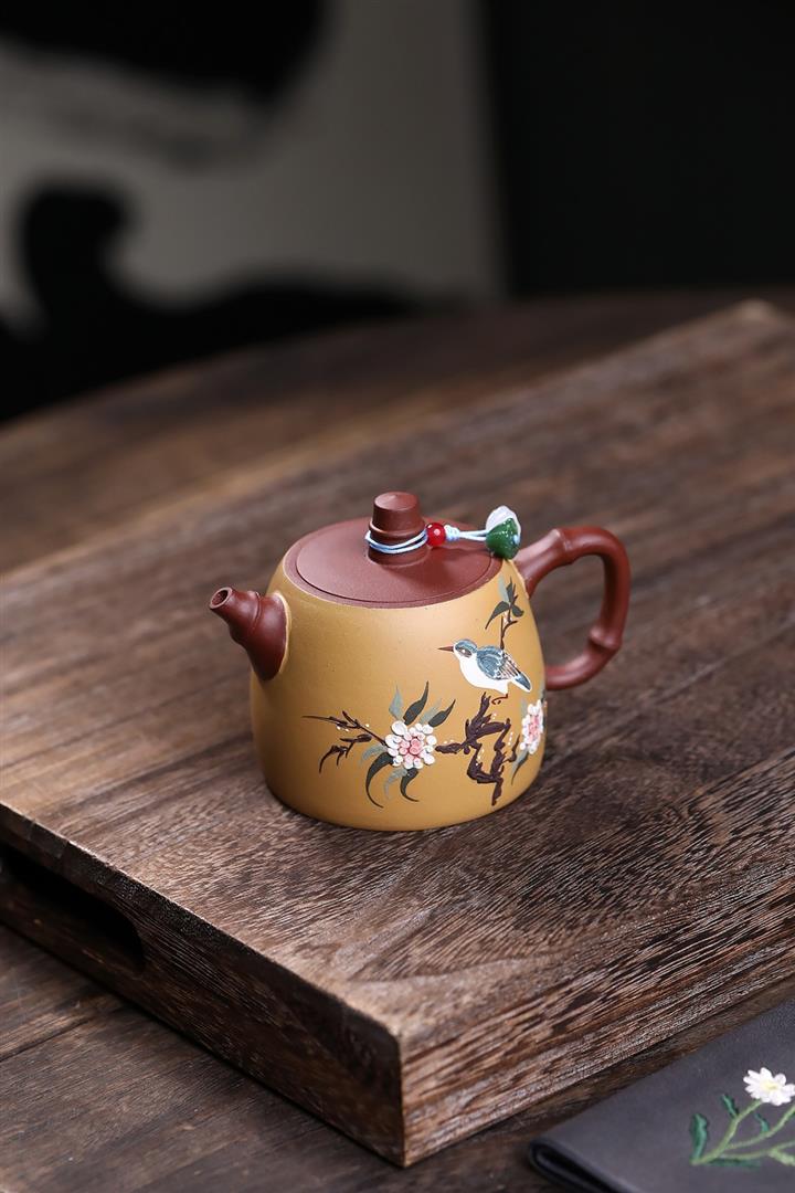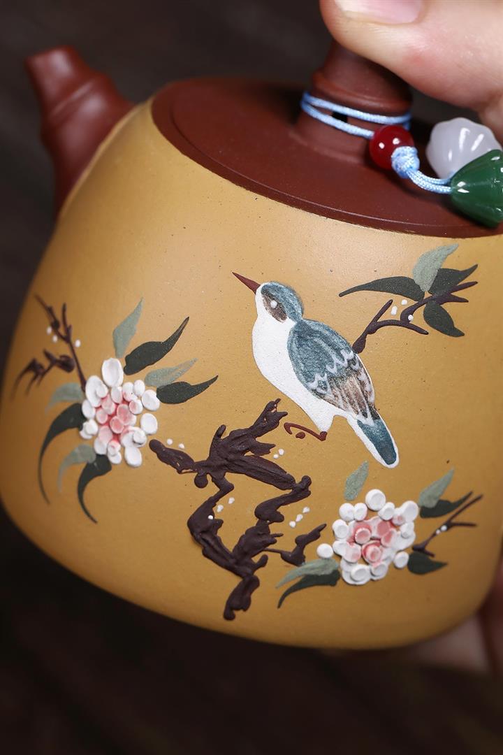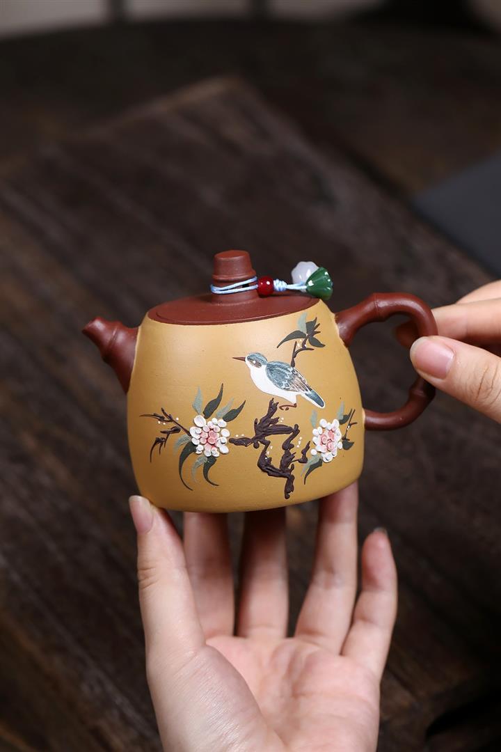 180cc原礦大紅袍雙色花鳥漢鐸茶壺POT8033