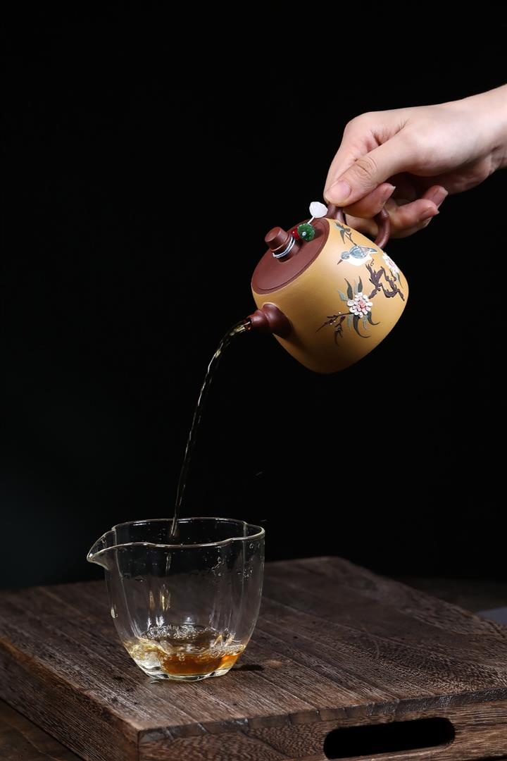 【泥料特點】砂土氣重,似淳實農民,日久使用,漸露鋒芒,養成變化,溫潤莊重。紫砂是壹種雙重氣孔結構的多孔性材質,氣孔微細,密度高。用紫砂壺沏茶,不失原味,且香不渙散,得茶之真香真味。紫砂使用越久,壺身色澤越發光亮照人,氣韻溫雅。紫砂壺長久使用器身會因撫摸擦拭,變得越發溫潤光澤。