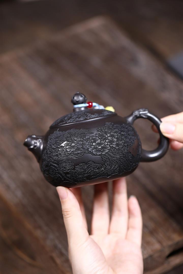 【作品介紹】此款壺形線條流暢,壺把,壺嘴,壺身壹氣呵成栩栩如生,是收藏把玩的好壺,泥料色澤古樸典雅,日久使用,漸露鋒芒,養成變化快,溫潤莊重,用其泡茶,使用的年代久,壺身就溫潤,泡出來的茶湯也就醇郁芳馨。